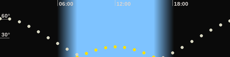 | Höchster Sonnenstand (Kulmination) | 12:03 Uhr (h = 16.3°) |