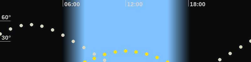 | Höchster Sonnenstand (Kulmination) | 12:04 Uhr (h = 16.1°) |