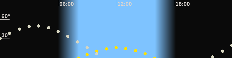 | Höchster Sonnenstand (Kulmination) | 12:05 Uhr (h = 16°) |