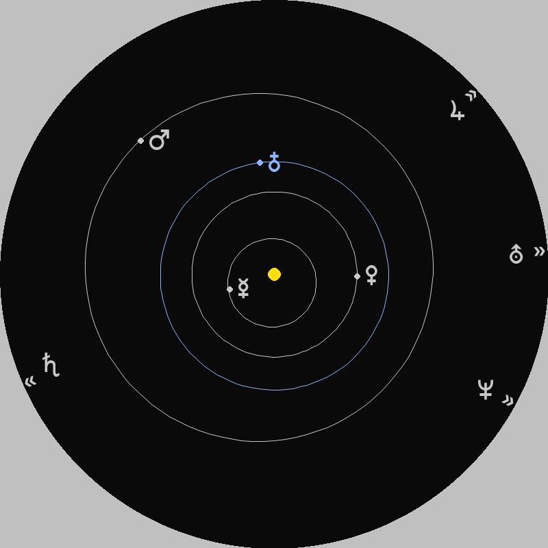 | f Merkur g Venus l Erde h Mars j Jupiter S Saturn A Uranus G Neptun |