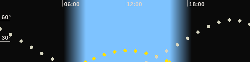 | Höchster Sonnenstand (Kulmination) | 12:15 Uhr (h = 16.7°) |