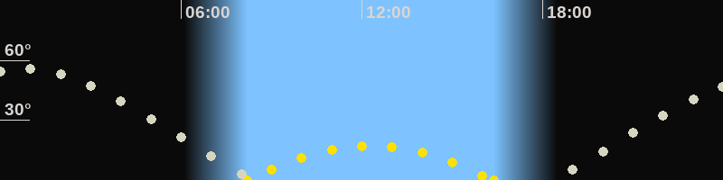 | Höchster Sonnenstand (Kulmination) | 12:17 Uhr (h = 17.3°) |