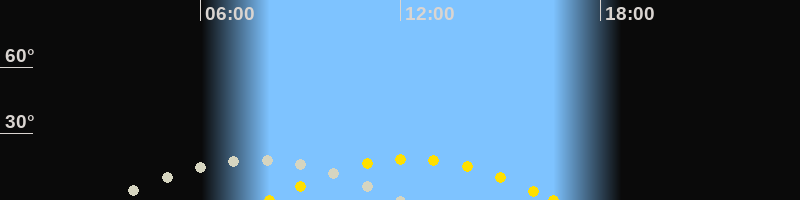 | Höchster Sonnenstand (Kulmination) | 12:20 Uhr (h = 18.7°) |