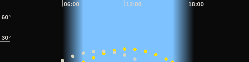 | Höchster Sonnenstand (Kulmination) | 12:21 Uhr (h = 19.1°) |