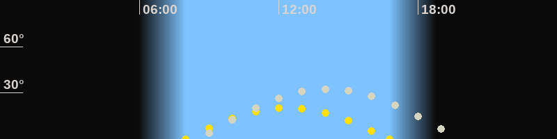 | Höchster Sonnenstand (Kulmination) | 12:22 Uhr (h = 20.2°) |