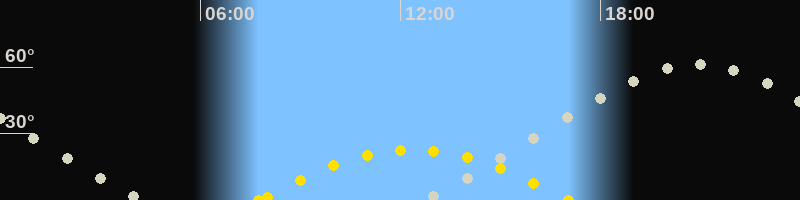| Höchster Sonnenstand (Kulmination) | 12:23 Uhr (h = 22.7°) |