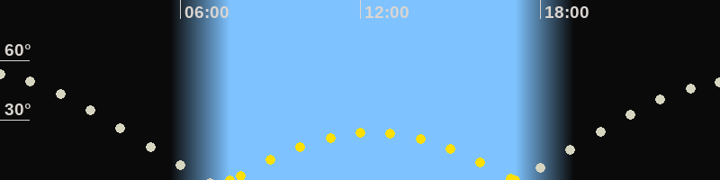 | Höchster Sonnenstand (Kulmination) | 12:24 Uhr (h = 23.9°) |