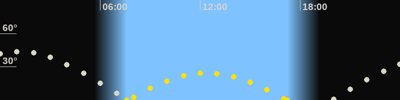 | Höchster Sonnenstand (Kulmination) | 12:24 Uhr (h = 24.5°) |
