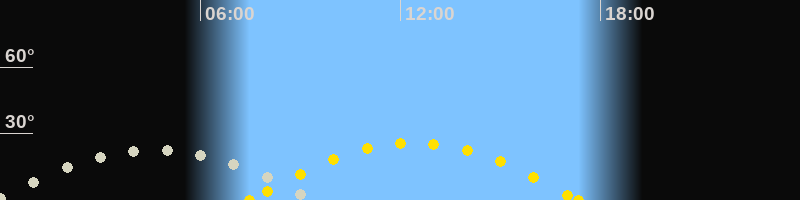 | Sonnenaufgang | 07:28 Uhr im Osten (αAz = 111°) |