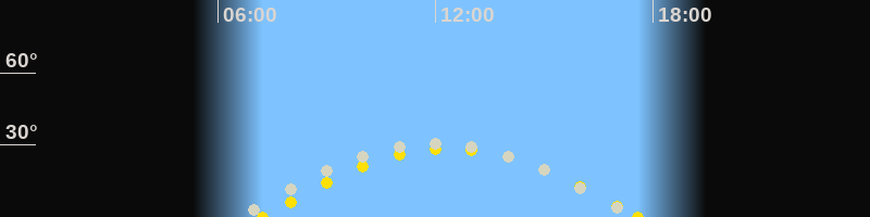 | Höchster Stand (Kulmination) | 11:55 Uhr (h=30.3°) |