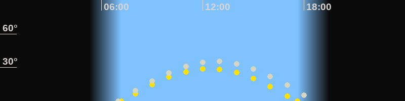 | Höchster Sonnenstand (Kulmination) | 12:23 Uhr (h = 29°) |