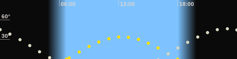 Höchster Sonnenstand (Kulmination)12:21 Uhr (h = 33.9°)