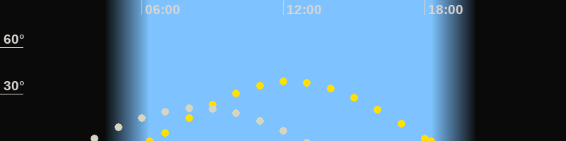 Höchster Sonnenstand (Kulmination)12:18 Uhr (h = 38.2°)