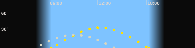Höchster Sonnenstand (Kulmination)12:18 Uhr (h = 38.6°)