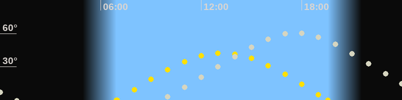 Höchster Stand (Kulmination)17:36 Uhr (h=60.7°)