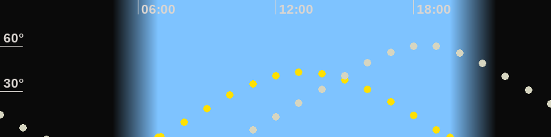 Höchster Stand (Kulmination)18:25 Uhr (h=60.5°)