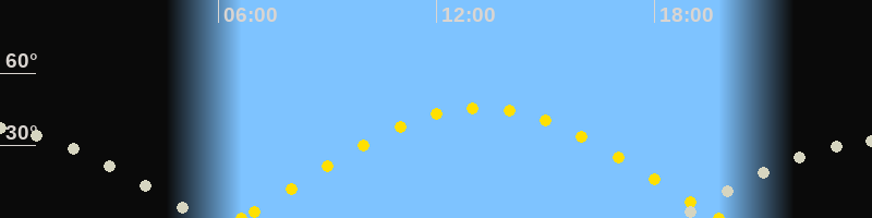 | Höchster Sonnenstand (Kulmination) | 13:12 Uhr (h = 45.6°) |