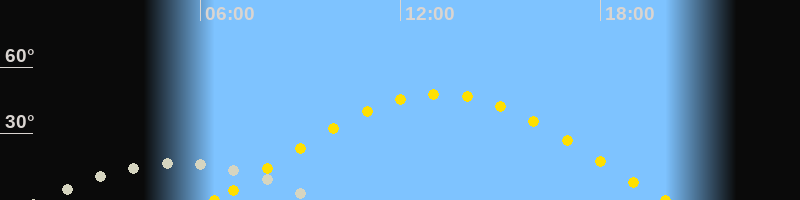 | Sonnenaufgang | 06:25 Uhr im Osten (αAz = 75.9°) |