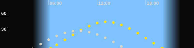 | Höchster Stand (Kulmination) | 09:35 Uhr (h=32.2°) |