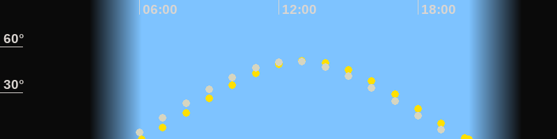 | Sonnenaufgang | 06:06 Uhr im Osten (αAz = 70.7°) |