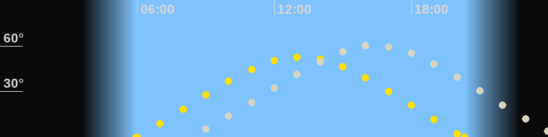 | Sonnenaufgang | 05:56 Uhr im Osten (αAz = 67.9°) |