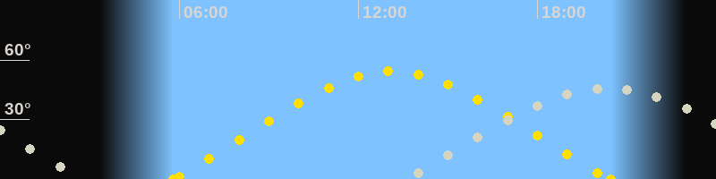 | Sonnenaufgang | 05:47 Uhr im Nordosten (αAz = 65.3°) |