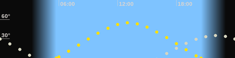 | Höchster Sonnenstand (Kulmination) | 13:07 Uhr (h = 54.9°) |