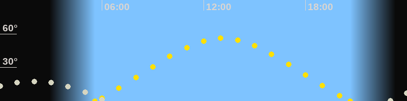 | Höchster Sonnenstand (Kulmination) | 13:06 Uhr (h = 56.3°) |