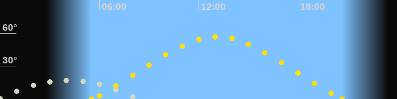 | Höchster Sonnenstand (Kulmination) | 13:06 Uhr (h = 56.8°) |