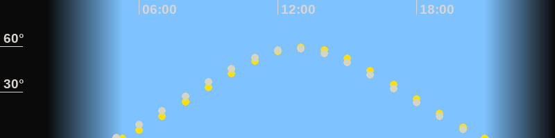 | Höchster Sonnenstand (Kulmination) | 13:06 Uhr (h = 59.4°) |