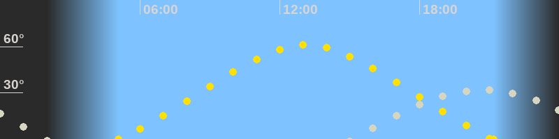 | Höchster Sonnenstand (Kulmination) | 13:07 Uhr (h = 61.1°) |