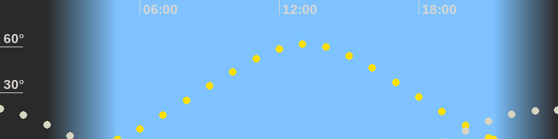 Höchster Sonnenstand (Kulmination)13:08 Uhr (h = 61.6°)