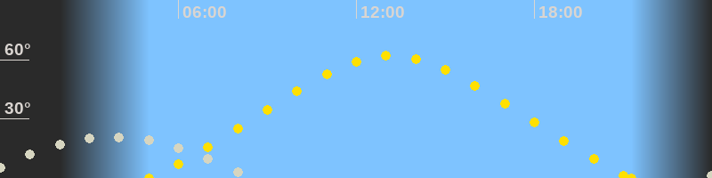 | Höchster Sonnenstand (Kulmination) | 13:09 Uhr (h = 62.1°) |