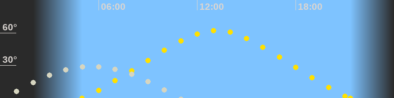 | Höchster Sonnenstand (Kulmination) | 13:09 Uhr (h = 62.3°) |