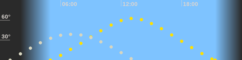 | Höchster Sonnenstand (Kulmination) | 13:10 Uhr (h = 62.4°) |