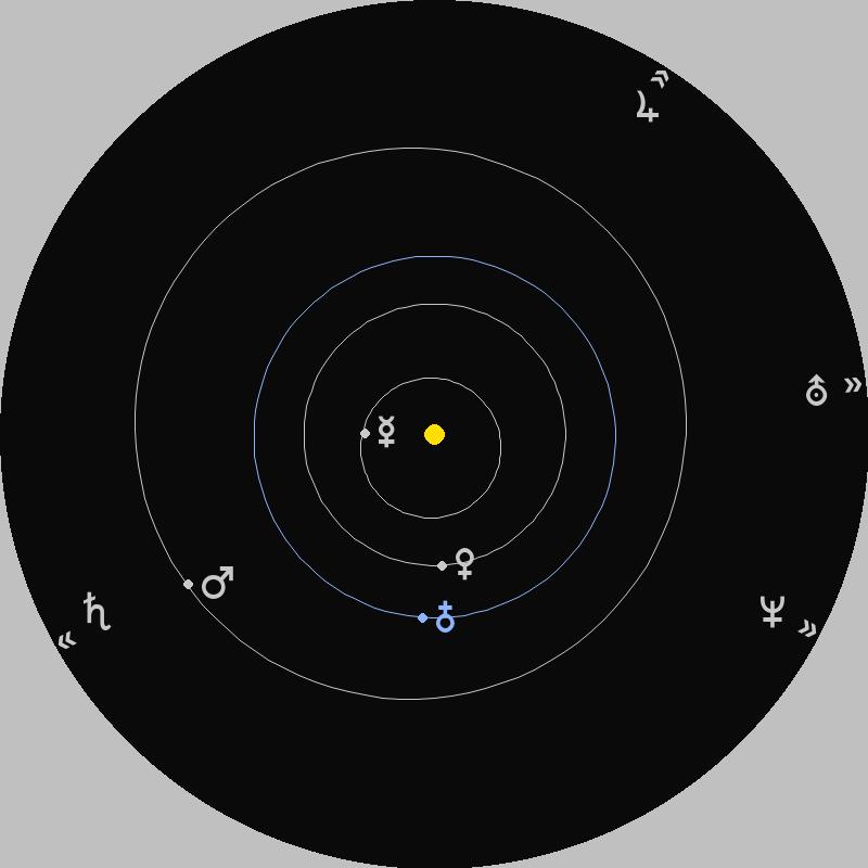 | f Merkur g Venus l Erde h Mars j Jupiter S Saturn A Uranus G Neptun |