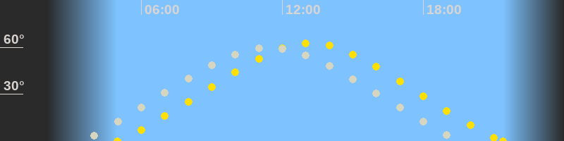 | Höchster Stand (Kulmination) | 11:25 Uhr (h=59.7°) |