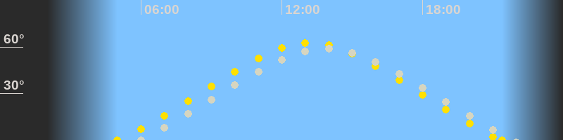 | Höchster Sonnenstand (Kulmination) | 13:11 Uhr (h = 62.7°) |