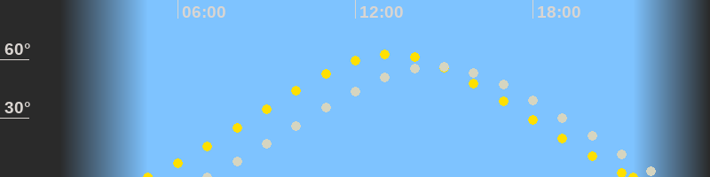 | Höchster Sonnenstand (Kulmination) | 13:12 Uhr (h = 62.7°) |