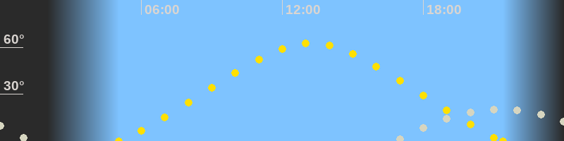 | Höchster Sonnenstand (Kulmination) | 13:13 Uhr (h = 62.5°) |