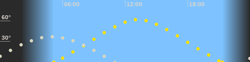 | Höchster Sonnenstand (Kulmination) | 13:15 Uhr (h = 61.7°) |