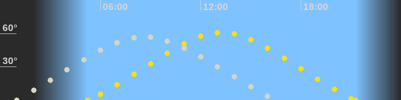 | Höchster Sonnenstand (Kulmination) | 13:16 Uhr (h = 61°) |