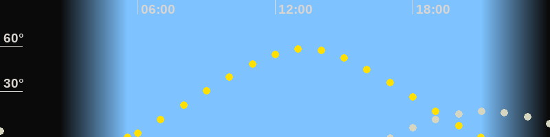 | Höchster Sonnenstand (Kulmination) | 13:16 Uhr (h = 58.1°) |