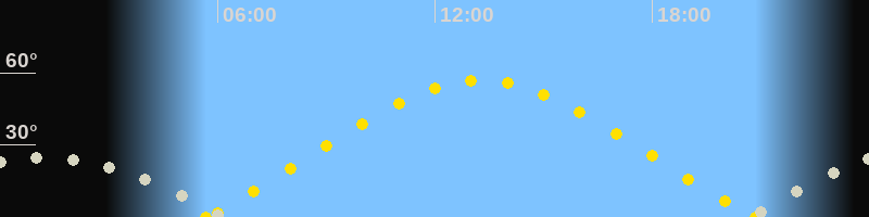 | Höchster Sonnenstand (Kulmination) | 13:16 Uhr (h = 56.8°) |