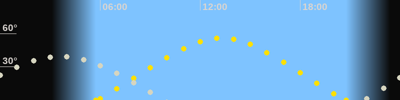 | Höchster Sonnenstand (Kulmination) | 13:16 Uhr (h = 56°) |