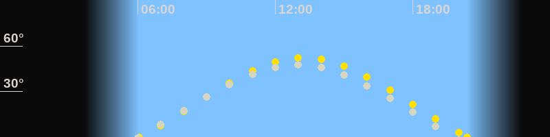 | Sonnenaufgang | 06:03 Uhr im Osten (αAz = 67.9°) |