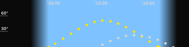 | Sonnenaufgang | 06:10 Uhr im Osten (αAz = 70.7°) |