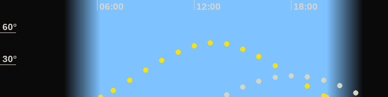 | Sonnenaufgang | 06:12 Uhr im Osten (αAz = 71.2°) |