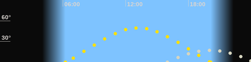 | Sonnenaufgang | 06:15 Uhr im Osten (αAz = 72.3°) |