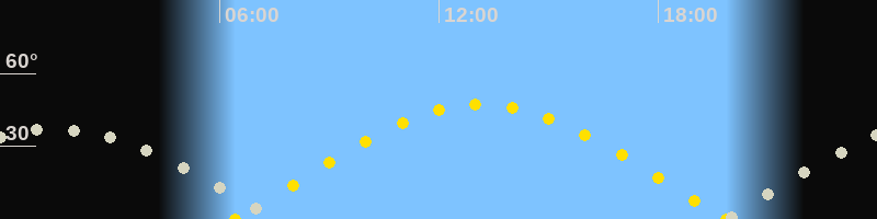 | Höchster Sonnenstand (Kulmination) | 13:10 Uhr (h = 47.3°) |